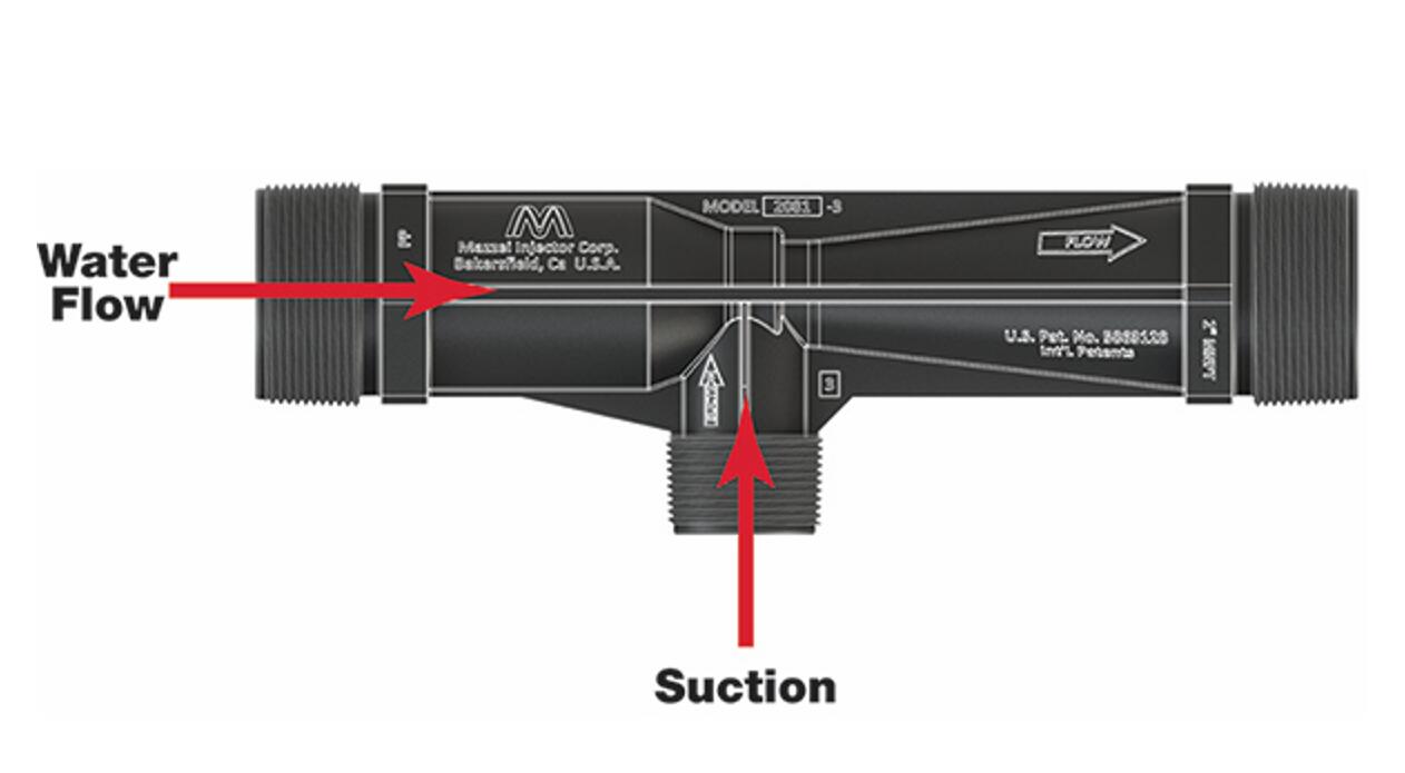當加壓水進入射流器入口時,它被壓縮向噴射室并變成高速射流。通過注射室的速度增加導致絕對壓力降低,從而產生真空,將液體或氣體添加劑通過吸入口吸入并將其徹底混合到水流中。隨著射流向射流器出口擴散,其速度降低,并以比進入射流器時略低的能量恢復其完全混合狀態的流動。