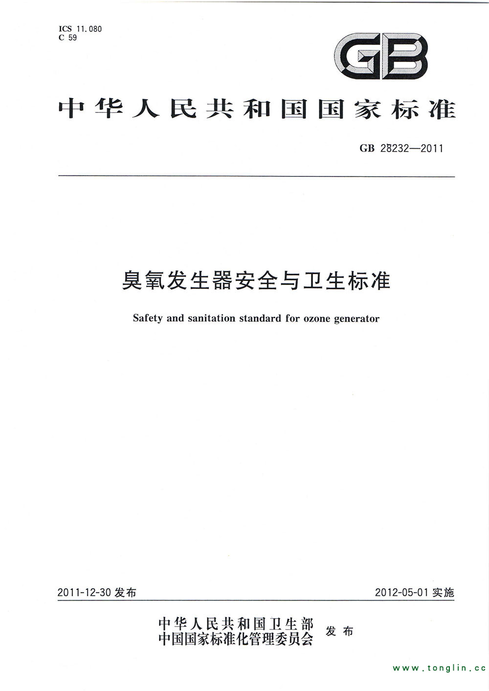 英文標(biāo)準(zhǔn)名稱 Standard Title in English Safety and sanitation standard for ozone generator
